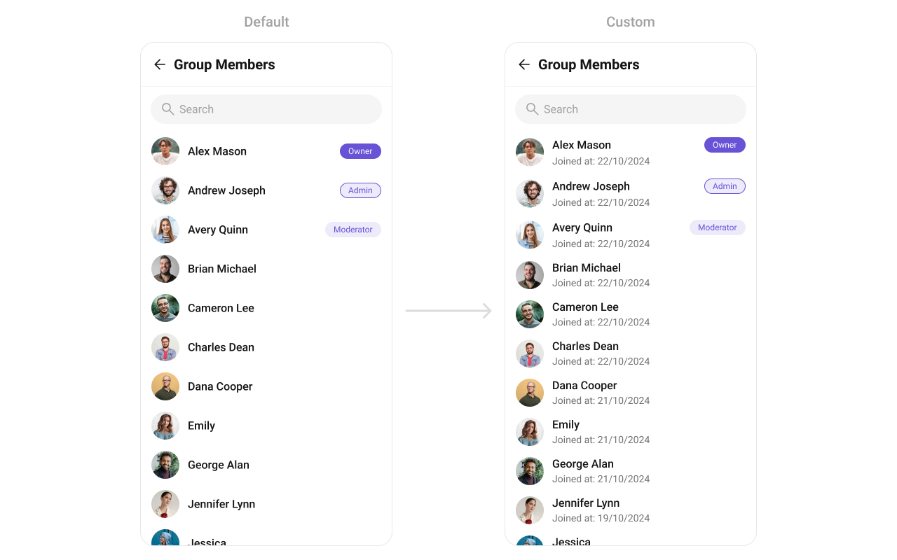 • Include additional member details like joined date, bio, or status.